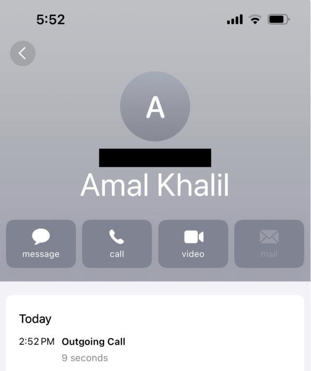 Registro de la llamada telefónica entre Amal Khalil y la periodista Carmen Joukhadar.
