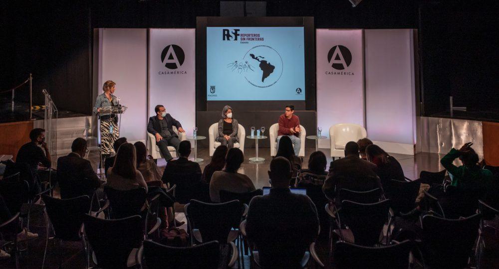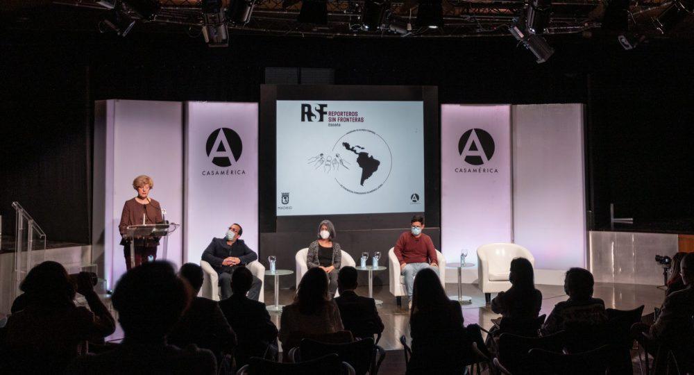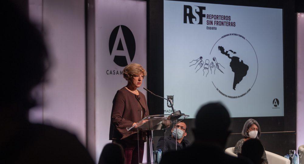 La presidenta de Reporteros Sin Fronteras abrió paso a las intervenciones de los periodistas acogidos, en un debate coordinado por la reportera especializada en América Latina, Lula Gómez.