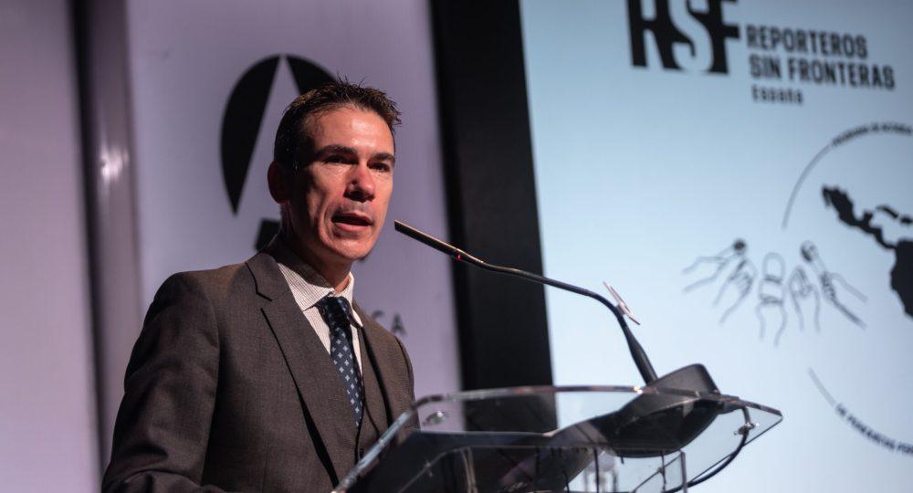 Intervino también el concejal del Área Delegada de Internacionalización y Cooperación del Ayuntamiento de Madrid, Santiago Saura, firme defensor de esta iniciativa conjunta de RSF España y el consistorio de la capital. Aurora Mínguez, nueva presidenta de la sección española de RSF, realizó una entusiasta defensa del coraje de estos periodistas y una contundente denuncia de las amenazas a la libertad de información que asolan América Latina. “La libertad de prensa en Latinoamérica vive una situación terrible. Estos periodistas de Nicaragua, México, Colombia y Cuba del programa de acogida que tan generosamente patrocina el Ayuntamiento de Madrid son un ejemplo de valor para todos nosotros”, afirmó.